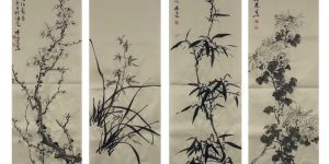 画心尺寸:每幅136×34厘米,共4幅 裱好尺寸:每幅170 …