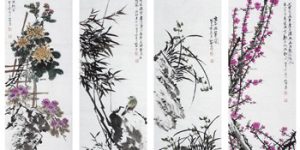 画心尺寸:每幅136×34厘米,共4幅 裱好尺寸:每幅170 …